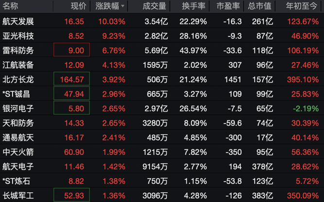 商业航天板块再度活跃,航天发展实现13天9板,亚光科技、雷科防务、江航装备等跟涨。