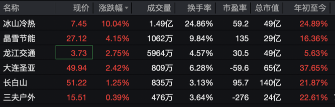 此外,冰雪旅游指数盘中走强,冰山冷热涨停。