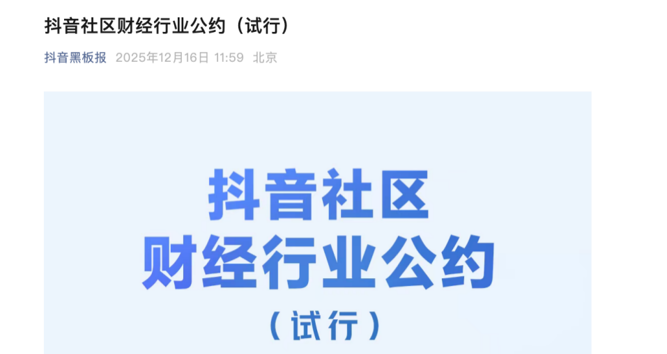 【导读】抖音发布《抖音社区财经行业公约(试行)》