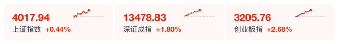 截至午间收盘,沪指报4017.94点,涨0.44%;深证成指涨1.8%,创业板指涨2.68%。