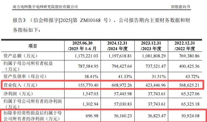 招股意向书显示,南网数字预计其2025年全年的营业收入为64亿元至67亿元,同比增长5.10%至10.02%;扣非后净利润为5.62亿元至5.90亿元,同比增长0.07%至5.06%。