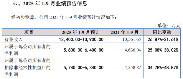 招股说明书(注册稿)显示,北矿检测预计其2025年前三季度的营业收入为1.34亿元至1.39亿元,同比增长26.87%至31.61%;扣非后净利润为5740万元至6340万元,同比增长34.78%至48.87%。