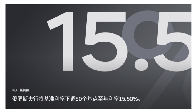 尽管通胀出现反弹,俄罗斯央行仍连续第六次降息,为在高利率环境下承压的企业提供一定缓解。