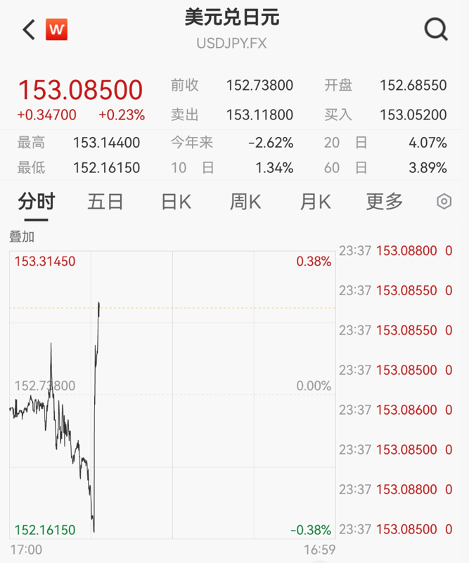 消息公布后,美元兑日元直线拉升,逆转此前跌势。