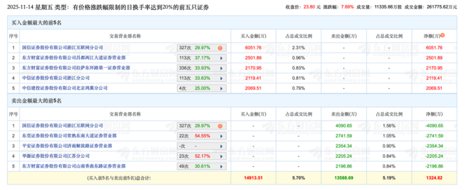 从龙虎榜数据来看,日前“拉萨天团”、国信证券浙江互联网分公司等游资轮番现身。市场人士认为,合富中国的股价暴涨很大程度源于游资炒作。