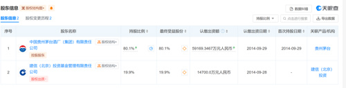 其中,茅台集团认缴出资1.53亿元,持股占比51%;建信信托认缴出资1.47亿元,持股占比49%。