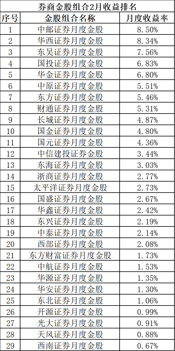 2月金股“成绩单”:29家券商收益为正,中邮、华西领跑