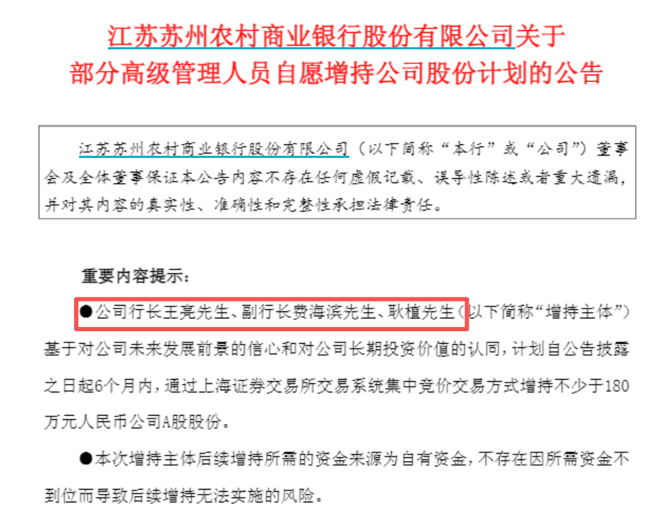 【导读】苏农银行刚聘任的行长与副行长,计划增持公司股份超180万元