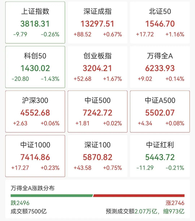 9月29日开盘,A股三大指数涨跌不一,创业板指涨逾1%。截至发稿,沪指跌0.26%,深成指涨0.67%,创业板指涨1.67%。创业板指重回3200点上方。