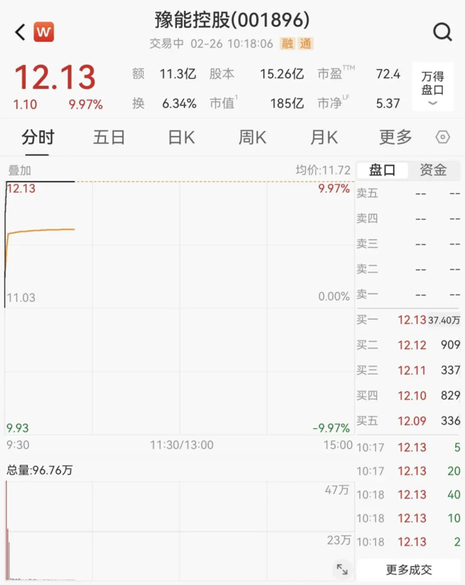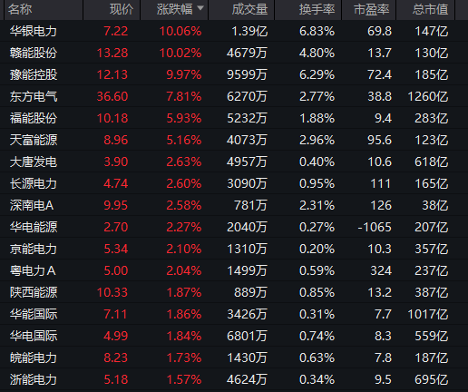 电力板块表现活跃,华银电力、赣能股份、豫能控股均直线拉涨停。