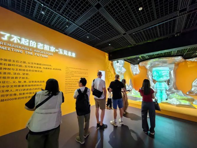 随即,进入“玉见未来”单元可以体验到中国玉石之美,也可以跟随玉神人从古老的仪式中读懂对天地的敬畏。