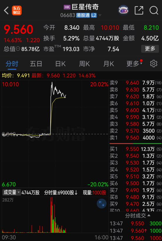 11月12日下午开盘,港股上市的“周杰伦概念股”巨星传奇一度涨超20%。