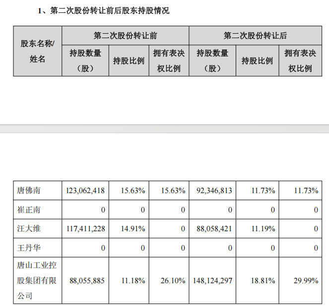 完成第二次股份转让后,唐山工控将持有共进股份18.81%的股份,拥有共进股份29.99%的股份。