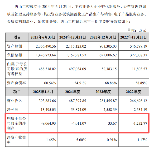 截至2025年6月30日,唐山工控的资产总额达235.65亿元,归母所有者权益为48.85亿元。