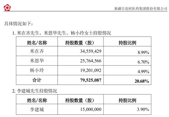 如今,米在齐、米恩华、杨小玲仍为百花医药控股股东、实际控制人,李建城不再是百花医药控股股东、实际控制人之一致行动人,其所持百花医药股份不再合并计算。