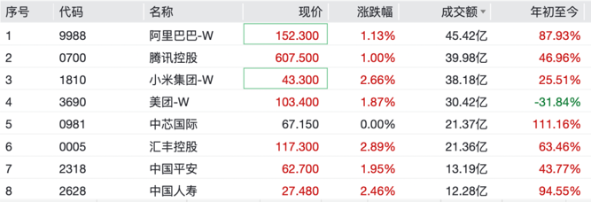 港股方面,恒生指数、恒生科技指数、恒生中国企业指数均涨超1%。个股方面,腾讯控股、阿里巴巴涨超1%,中通快递、小米集团、海底捞、中国人寿等均涨超2%。