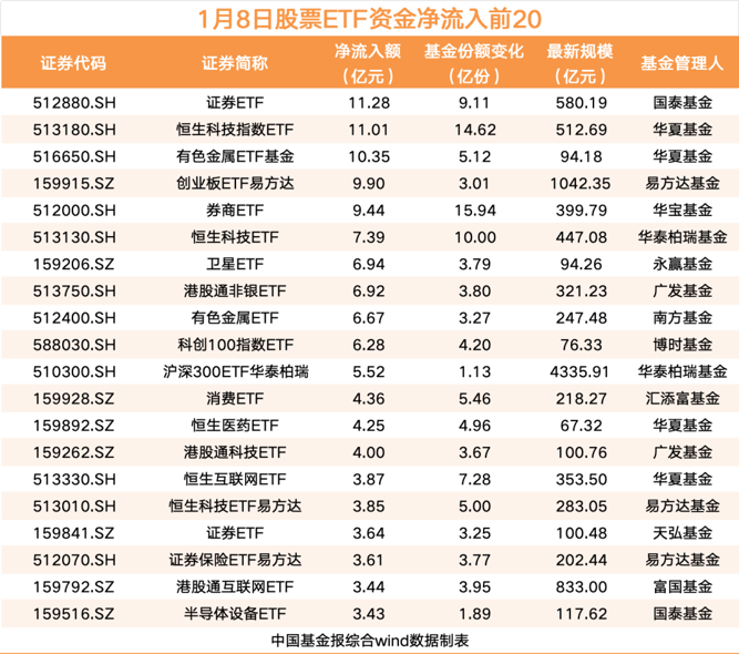 【导读】1月8日股票ETF资金净流入超46亿元