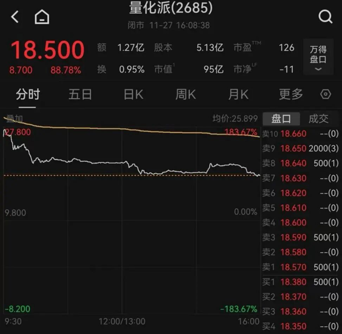 量化派首日上市收涨超88%