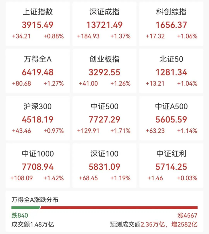 3月25日上午,A股三大指数冲高回落,创业板指、深成指盘中均涨超2%。截至午间收盘,沪指涨0.88%,深成指涨1.37%,创业板指涨1.26%,科创综指涨1.06%。
