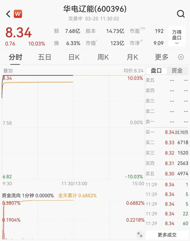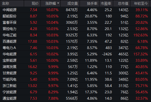 绿电板块强势走高,华电辽能实现8连板,中闽能源、韶能股份、富春环保、晋控电力等多股涨停。
