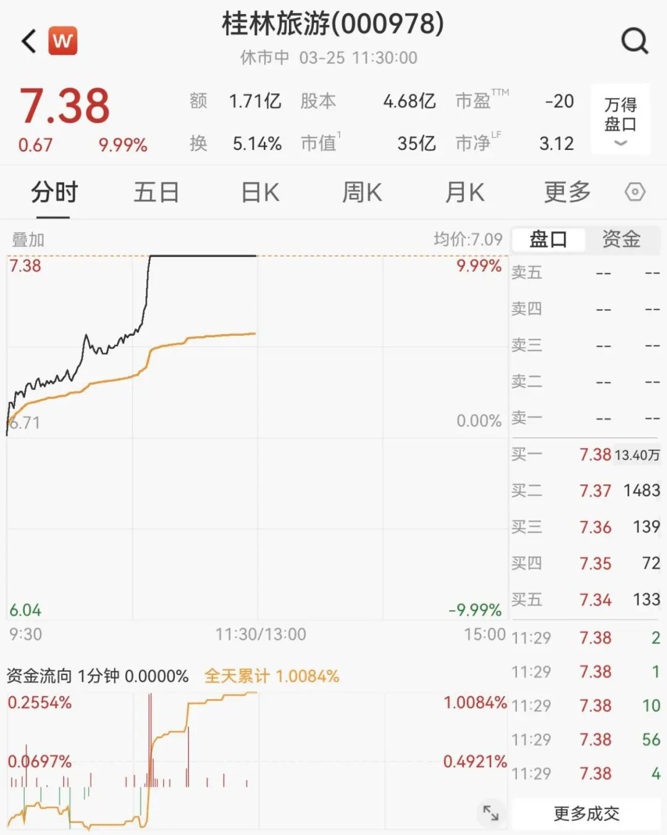 旅游概念股异动拉升,桂林旅游盘中直线拉涨停,中体产业、西域旅游、华天酒店等跟涨。