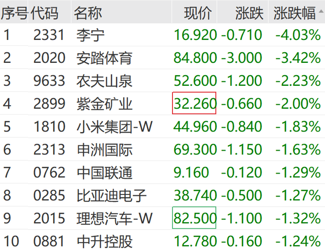港股市场高开低走,截至发稿,三大指数集体飘绿;李宁跌超4%,领跌恒指成份股。