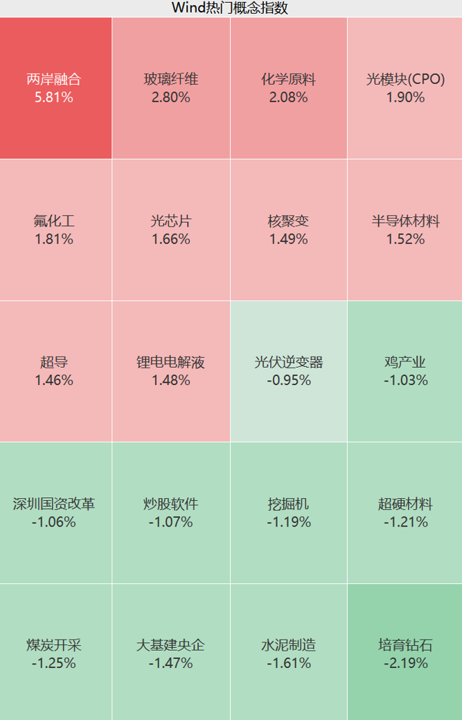 盘面上,上午国防军工、通信、交通运输、电力设备等板块涨幅居前,福建本地股、光模块、可控核聚变等概念股活跃;美容护理、银行、煤炭等板块不振。
