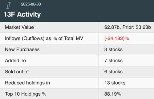 根据13F文件,截至2025年6月30日,景林香港公司二季度末在美股市场持有28只证券,合计持仓总市值为28.74亿美元,较一季度末的32.28亿美元减少约11%。