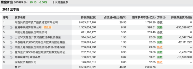 有色龙头紫金矿业三季报显示,高毅资产首席投资官邓晓峰今年三季度大幅减持紫金矿业,他管理的高毅晓峰鸿远集合资金信托计划退出了该股的股东名单,而高毅晓峰2号致信基金则减持了1860万股,持股数量降至1.80亿股,期末持股市值约为53亿元。