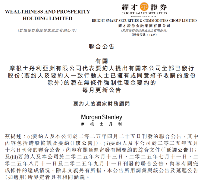公告表示,要约人已向国家发改委提交申报材料,并一直积极与其进行沟通。与国家发改委就收购事项的相关流程正按计划推进中。要约人及耀才证券将继续推进完成条件的达成。