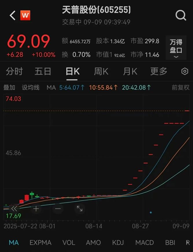 异动个股方面,此前9涨停的天普股份完成核查后复牌,再次“一字”涨停。