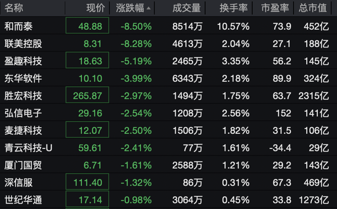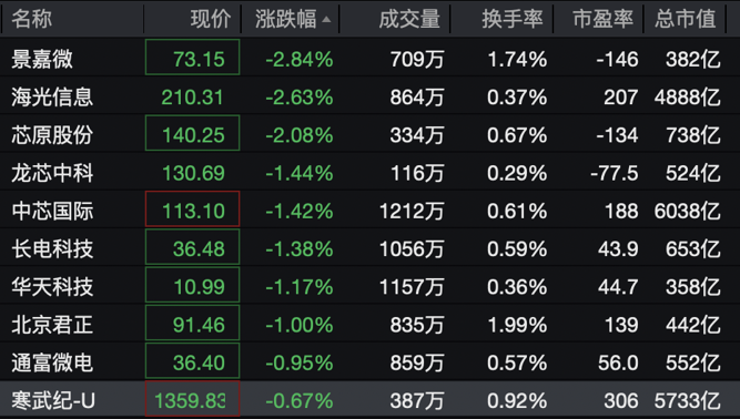 此外,摩尔线程概念股开盘下挫,和而泰、联美控股跌幅居前。