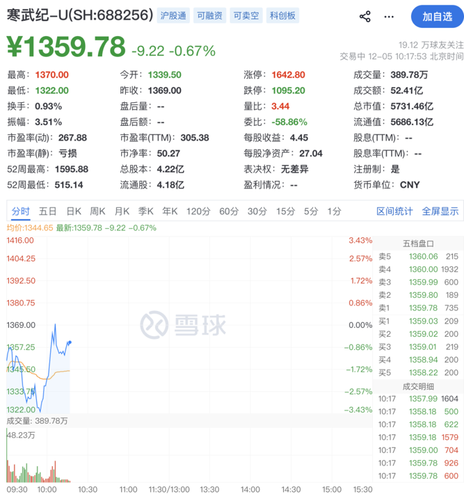 昨日深夜,寒武纪发布严正声明称,公司关注到今日媒体及网络传播的关于公司产品、客户、供应及产能预测等相关信息,均为误导市场的不实信息。今日早盘,寒武纪一度跌超3%,随后震荡拉升。