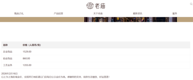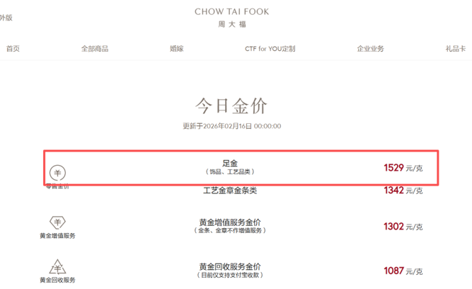 另外,国内金饰价格仍处于高位。截至发稿,周生生足金饰品价格为1534元/克;周大福、老庙黄金为1529元/克。