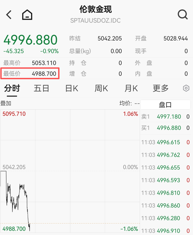 此前一个交易日,金价曾出现反转,收复部分失地,重新站上5000美元/盎司关口。