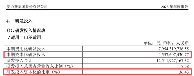 赛力斯在年报中表示,公司2025年研发投入的资本化比重同比增加,主要由于进入开发阶段的研发项目金额增加。