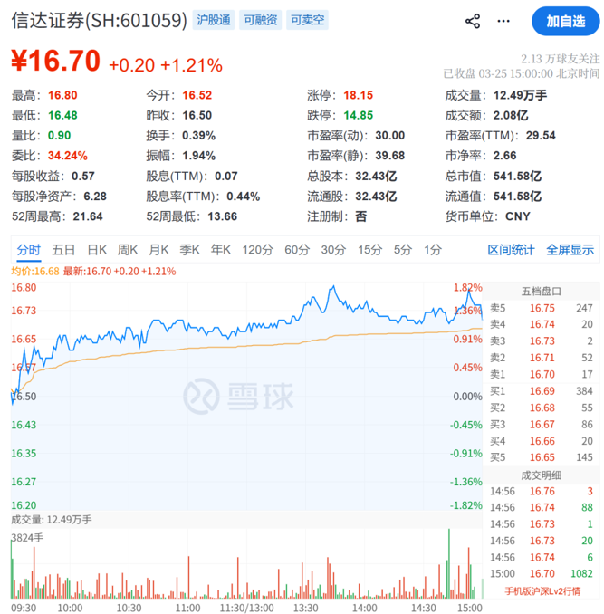 据悉,信达证券成立于2007年9月,是国内AMC系第一家证券公司。公司在全国多个省、自治区、直辖市设立了100余家分支机构,在内地和香港拥有5家子公司。2023年2月,信达证券在上交所挂牌上市交易,当前总市值为541亿元。