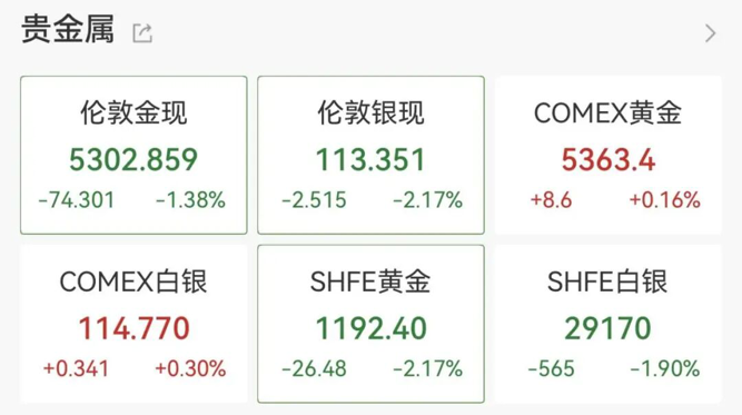 有色、基本金属板块大面积走低,白银有色一字跌停,137万手封死跌停。