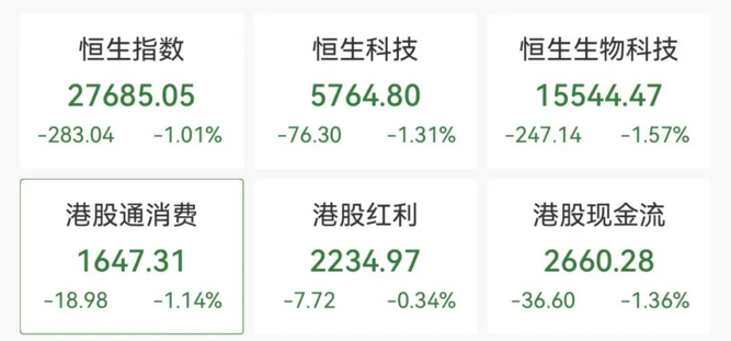 港股方面,三大指数均跌超1%,石药集团跌超10%,紫金矿业、周大福、快手等跌幅居前。