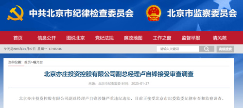 【导读】北京亦庄投资控股有限公司副总经理卢自锋被查