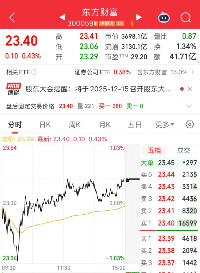 11月28日收盘,东方财富股价报23.4元/股,总市值3698亿元。
