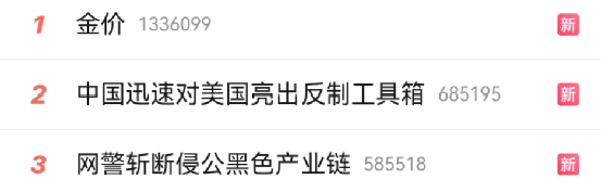 10月11日,#金价#的词条登上微博热搜榜首位,且热度持续上升。