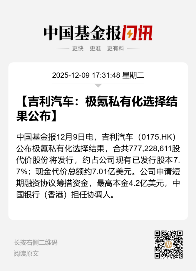 12月9日,吉利汽车正式公布了对极氪智能科技控股有限公司(NYSE:ZK,以下简称极氪)私有化交易中,持有人对价选择的最终结果和落地方案。