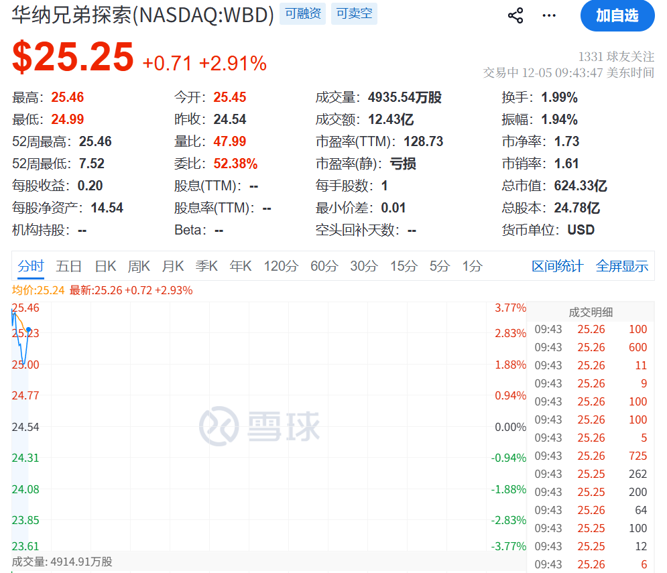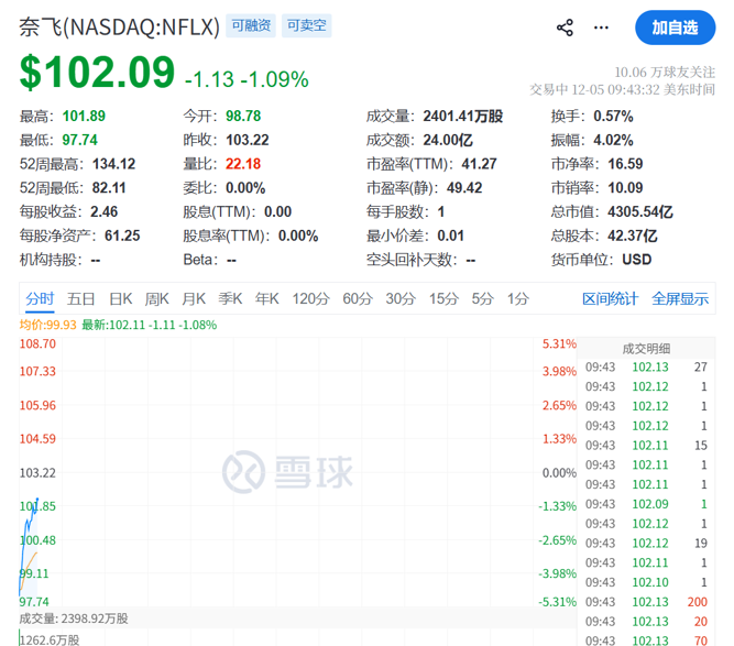 受此消息影响,Netflix股价下跌,而华纳兄弟股价上涨。
