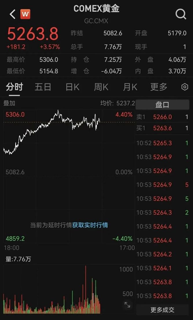 1月28日深夜,国际金价继续保持强势上涨走势,截至发稿,伦敦黄金现货价格涨幅达2%,COMEX黄金期货价格上涨3.57%。
