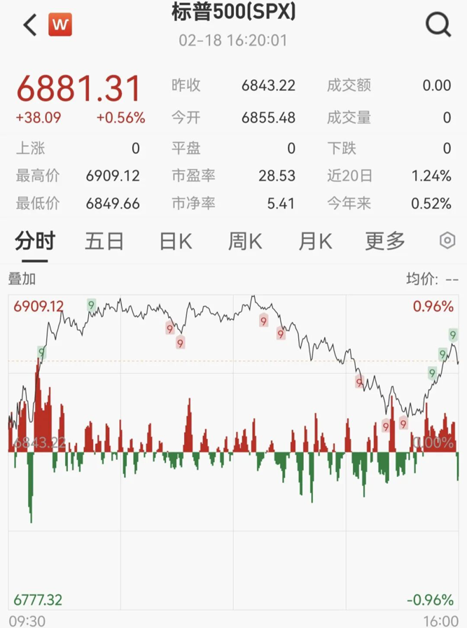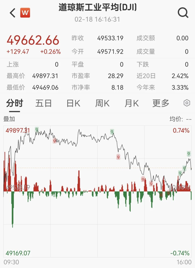 美国三大股指全线收涨,道指涨0.26%,报49662.66点;标普500指数涨0.56%,报6881.31点;纳指涨0.78%,报22753.63点。
