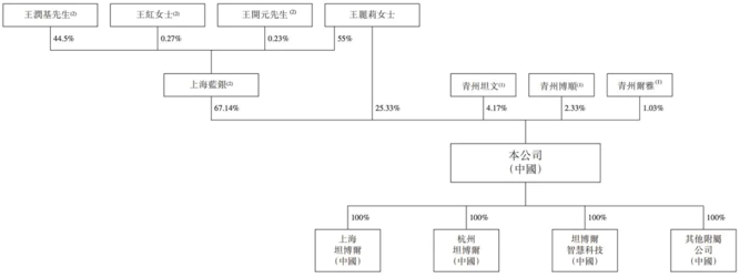 坦博尔有着浓厚的家族创业底色。招股书显示,公司由王勇萍创立,现由其配偶王丽莉及其子王润基通过一系列持股平台,共同控制着公司约96.64%的投票权。