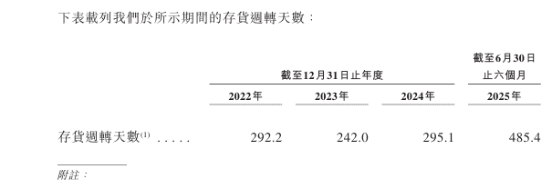 而且,存货周转效率大幅下滑,周转天数从2023年的242天增至2025年上半年的485天,在服装行业处于较高水平。