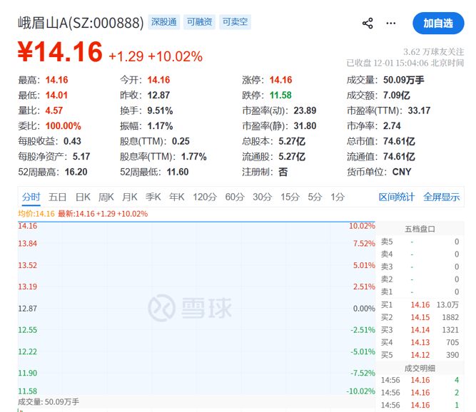 峨眉山A在公告中表示,此举是为践行上市公司股东回报责任,深化“与股东共享发展成果”的理念,让股东沉浸式体验金顶云海、冰雪温泉、禅茶雅韵等核心文旅资源,直观感受公司“科技+文化+生态”的发展魅力。