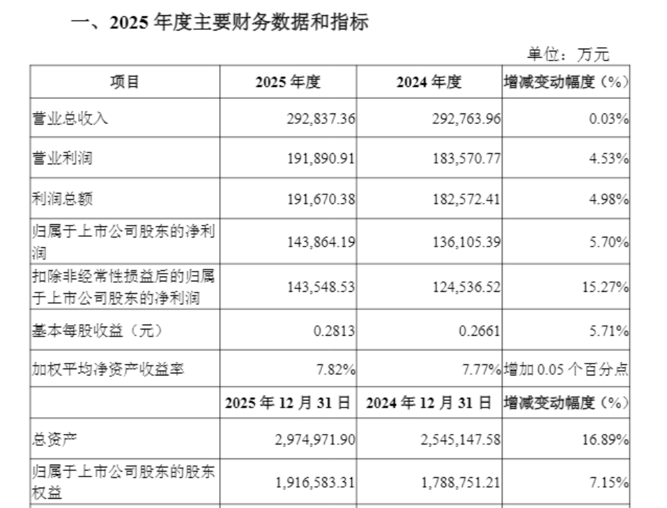 1月9日晚间,陕国投率先发布2025年业绩快报。2025年营业收入为29.28亿元,同比增长0.03%;归母净利润为14.39亿元,同比增长5.7%。2025年的加权平均净资产收益率为7.82%,相比2024年增加0.05个百分点。